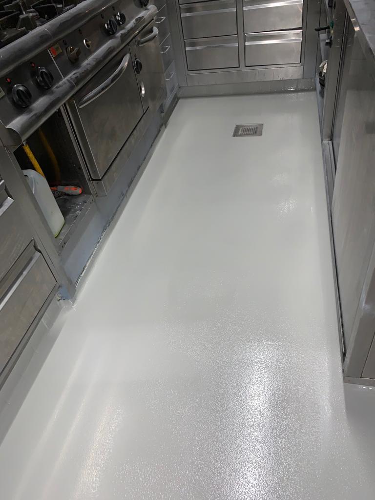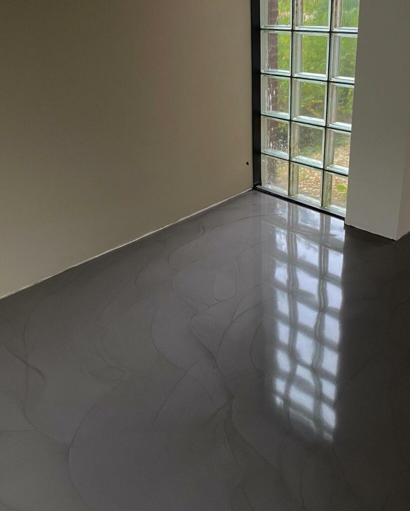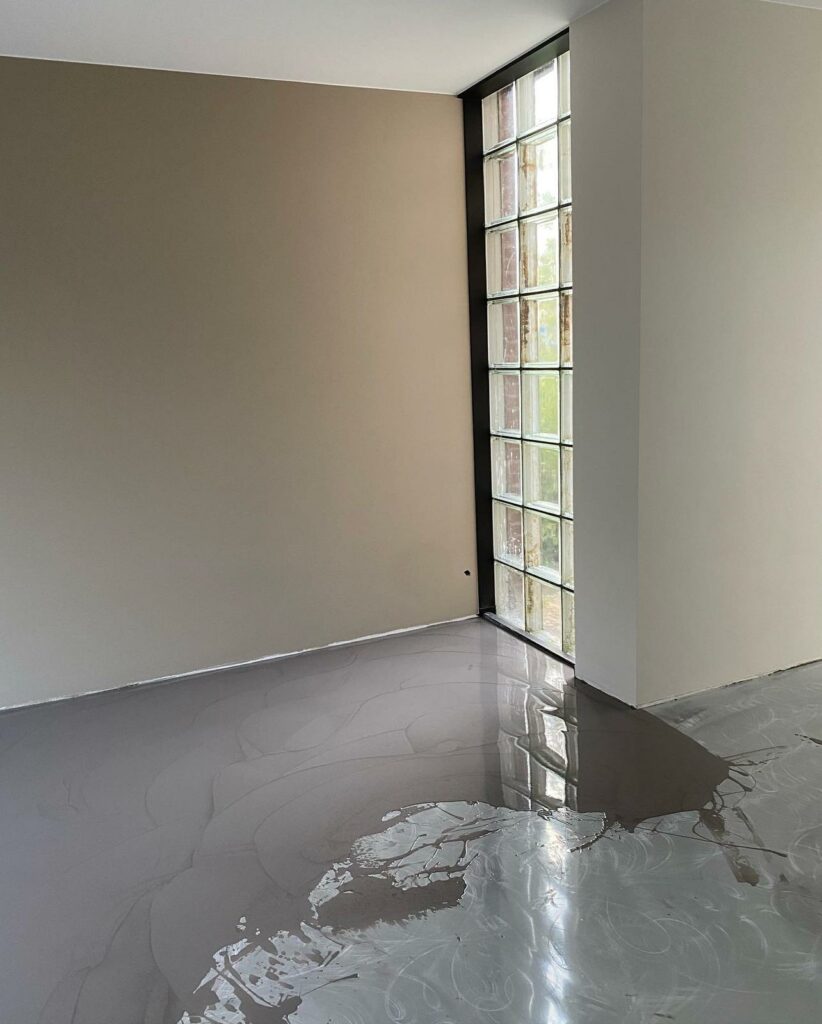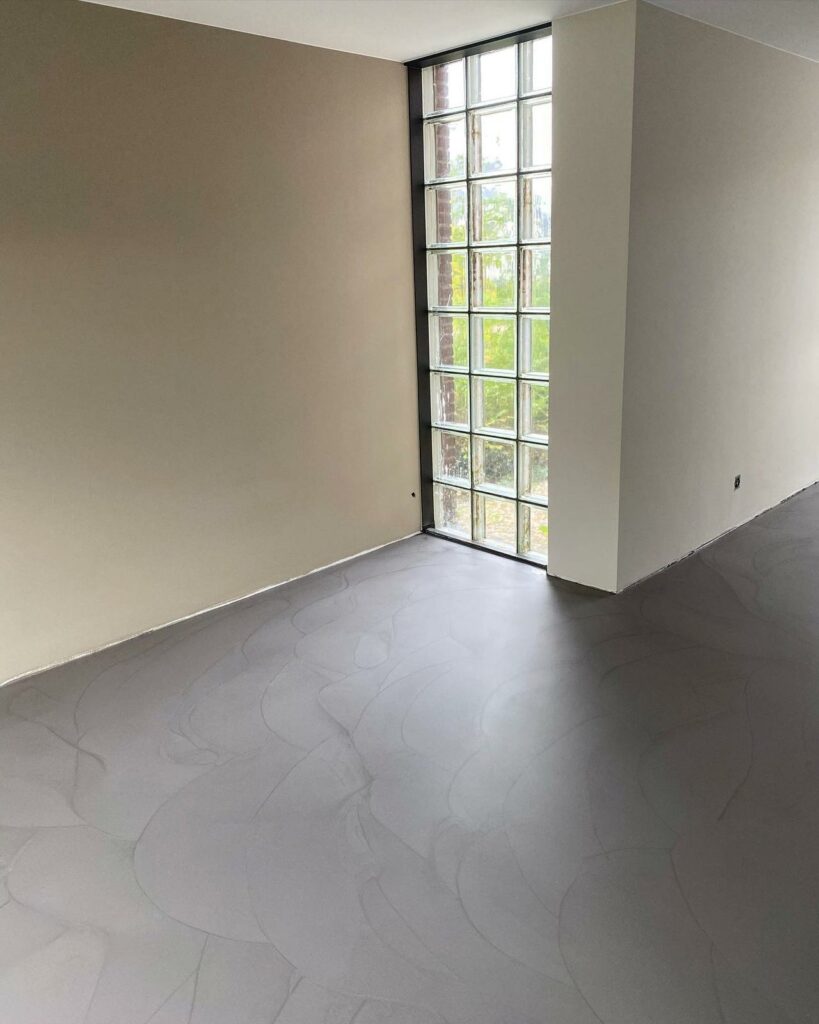 De epoxy is met 3 lagen aangebracht.Dit is na de 2e laag Met als eind, een anti slip laag. - Gietvloer benedenverdieping